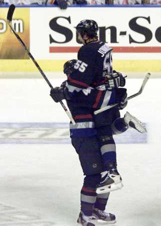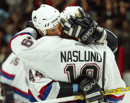hey look its the klatster! (beside naslund) aw wish he was still here...n then theres ruutu lookin like an angry loner..
