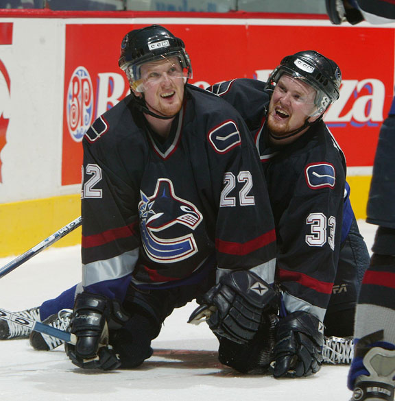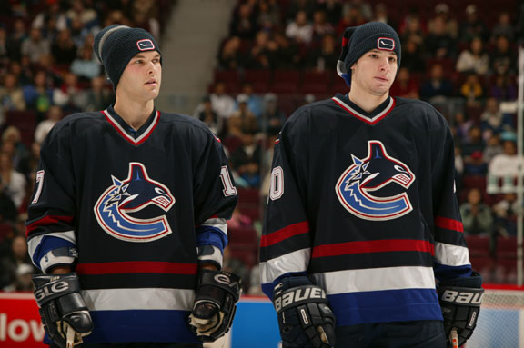 Hat-trick for Daniel Sedin! My fave twins! "[The Sedin twins] surprised me. They're patient with the puck, they can control the game. The passes they made on both goals -- it was like (the passes were) to themselves. I didn't know if one had two goals or if both had one goal." --Martin Brodeur